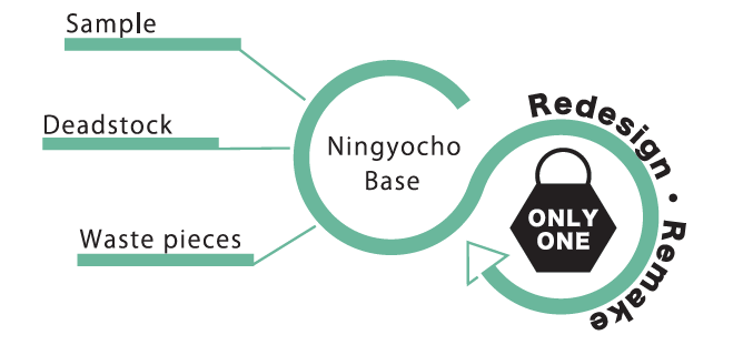 またサンプル生産で発生した不良品・余ってしまった資材など、今まで廃棄していたものをリメイクし、世界にたった一つだけの商品として皆様にご提供致します。