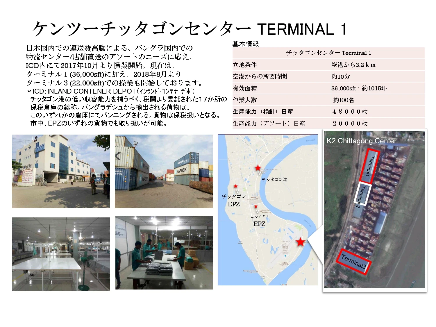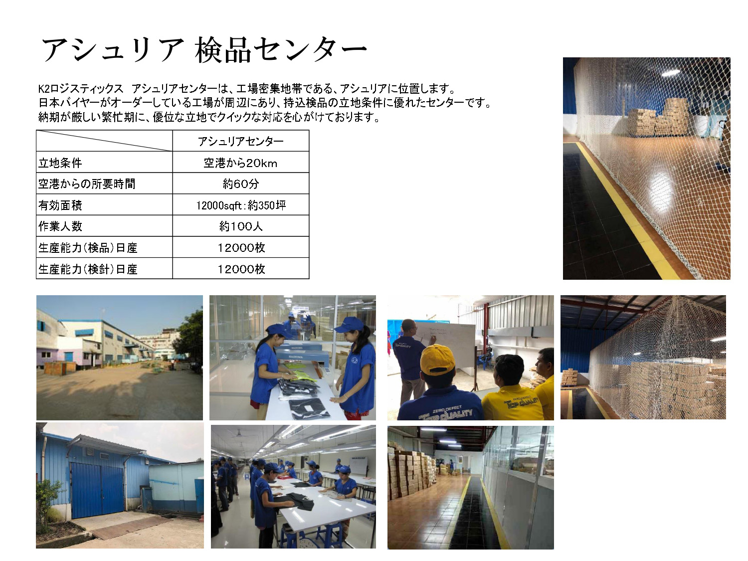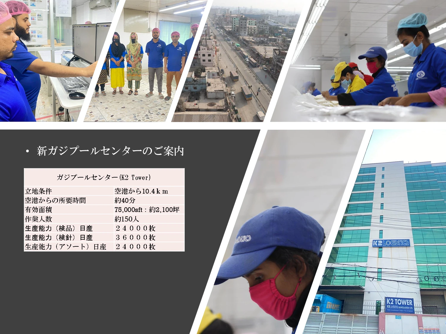 | 事業所 | K2アシュリアセンター/K2 ASHULIA CENTER Plot-1147, Khajur Bagan Boro-Ashulia, Savar, Bangladesh K2チッタゴンセンター/K2 CHITTAGONG CENTER |