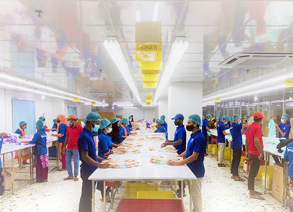 国内物流コスト削減のため、バングラデシュにて店舗直送アソート等の物流加工サービスを行っております。チッタゴン港近隣の保税区内に物流加工に適したセンターを持ち、最後の砦としてお客様のご要望にお応えいたします。またフォワーディングまでサポートを行い生産から出荷までの一気通貫サービスを提供いたします。