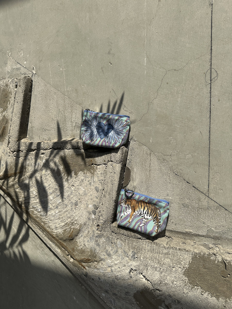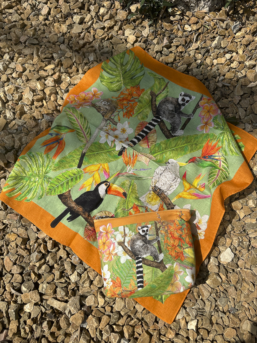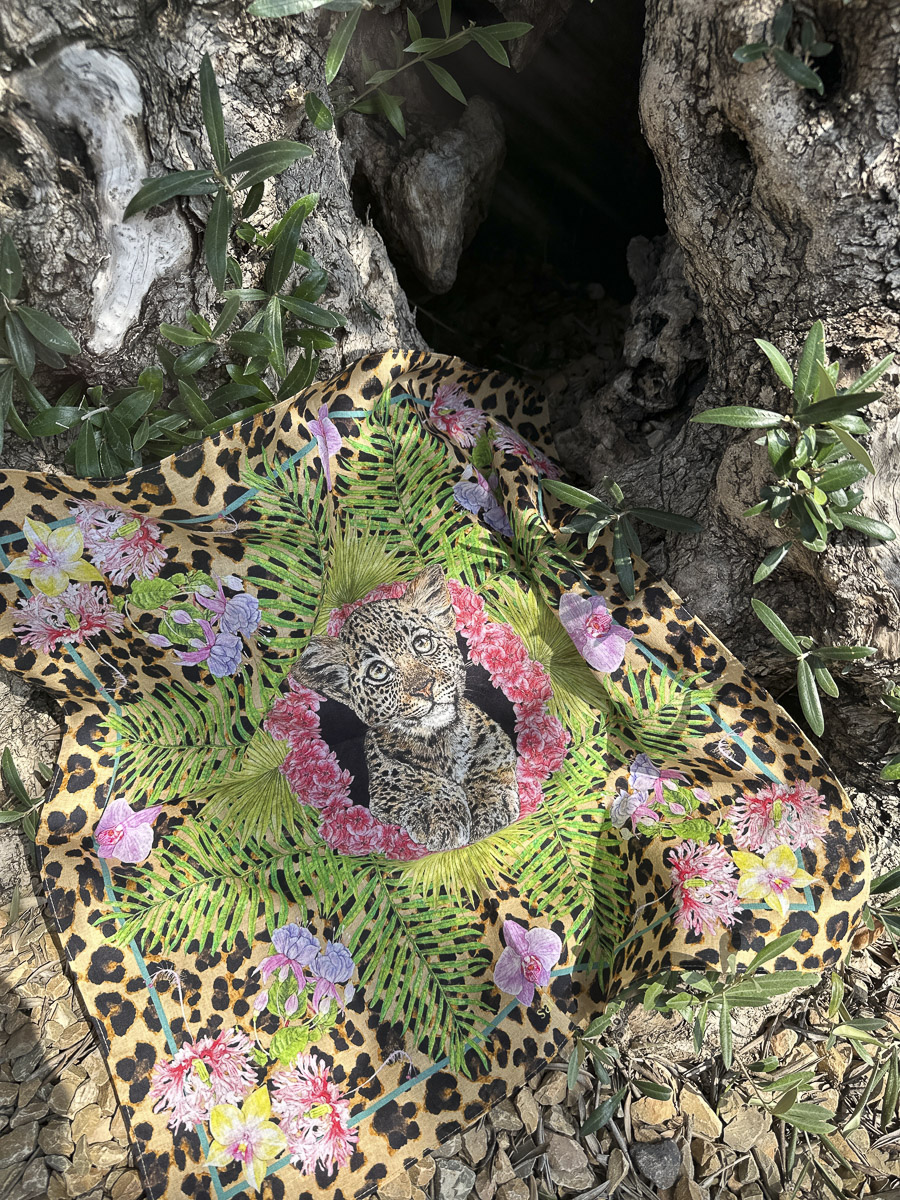 「テキスタイルに使用しているイラストは、全てペンと水彩画で手で描いたものになります。完成されたテキスタイルは一点ずつ繊細に描いたイラストをコラージュして構成しています。独特な絵のタッチや構図、そして細部までこだわって製作したプリントや製品を、是非お楽しみください。」